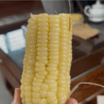 この日の朝ごはんは茹でたてのとうもろこし。
